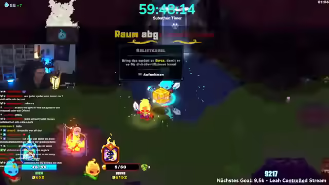 02:11:12Es wird eine 'Rosenkranzperlenkanone' entdeckt, eine Waffe, die mit Geld schießt, was als 'insane' bezeichnet wird. Es wird überlegt, ob man sie ausprobieren soll, obwohl fast alles im Spiel bereits gekauft wurde und das Geld nicht mehr benötigt wird. Es wird verglichen mit dem Silvesterbrauch, Geld für Feuerwerk auszugeben. Es wird ausprobiert, wie die Waffe funktioniert und wie man sie auflädt. Es wird festgestellt, dass die Waffe Spaß macht. Es wird gefragt, ob es in der aktuellen Area noch etwas zu entdecken gibt. Der Chat gibt Hinweise auf einen Raum im Redewerk-Kern, der noch nicht besucht wurde. Es wird überlegt, wie man dorthin gelangt. Es wird ein inaktiver Automaton mit einem leeren Oberkörper gefunden. Es wird diskutiert, ob man jetzt in High Halls weiterspielen kann oder ob man den Automaton erst noch ein paar Mal treffen muss.