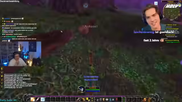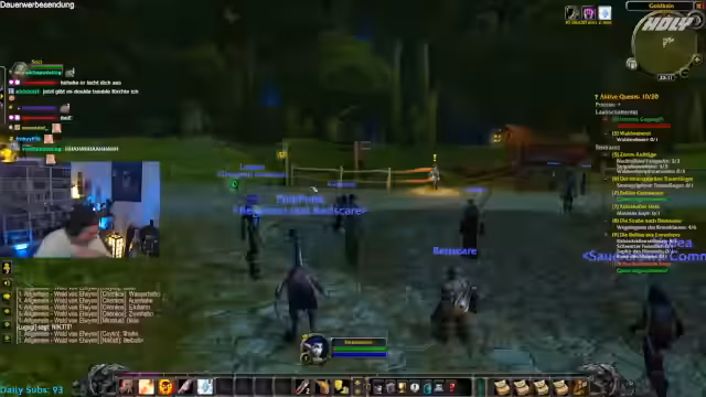 04:27:55Der Streamer und seine Mitspieler setzen ihr World of Warcraft-Gameplay fort, wobei sie sich auf Quests im Gebiet Teldrassil konzentrieren. Es kommt zu koordinierten Versuchen, Charaktere wie Hachi zu treffen und Gruppen zu bilden, was jedoch aufgrund von Levelunterschieden und Missverständnissen scheitert. Zwischenzeitlich werden strategische Diskussionen über Flugrouten und Questziele geführt, wobei der Fokus auf effizientem Leveln liegt. Ein Raid von Cassie wird dankend erwähnt, ohne weitere Details zu Spenden oder Subscribern.