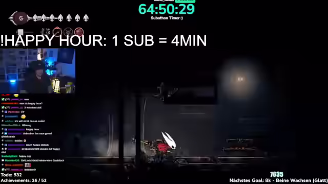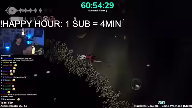 00:59:24Der Streamer kündigt die Happy Hour für 18 Uhr an, bei der jeder Sub vier Minuten zum Timer hinzufügt. Er betont, dass niemand zum Support gezwungen werden soll, aber es die beste Möglichkeit sei, den Subathon zu unterstützen. Er gibt Tipps für Silksong, wie man zum Heilen nicht den Knopf gedrückt halten muss und wie man mit der Sprint-Taste an der Wand smoother hochklettern kann. Er erklärt, dass er jetzt die Bird-Quest in Silksong machen wird. Er erwähnt, dass er als Kind für Produkte geworben hat und dass er zwei Werbungen gemacht hat, sogar fürs Fernsehen. Er erinnert sich an eine Werbung von Revy und eine Werbung von Chef Strobl mit einem Rasierer. Der Streamer gibt weitere Tipps zu Silksong und erklärt, dass Silksong besser ausgearbeitet ist als Hollow Knight, ähnlich wie Elden Ring und Dark Souls 3.