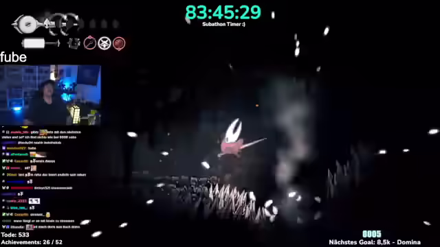 02:22:51Es wird erwähnt, dass bei 7,5K der K-Pop-Tanz ansteht, der auf TikTok hochgeladen werden muss. Es wird gefragt, welchen K-Pop-Tanz der Chat machen soll. Es wird gefragt, ob Silent Hill F noch in diesem Stream gespielt wird. Es wird erwähnt, dass Schnarkis immer die Nächte mit dabei ist. Es wird gefragt, was der Hype Train Level ist. Es wird festgestellt, dass der Mut hoch sein muss. Es wird festgestellt, dass der Timer gleich auf 50 Stunden ist. Es wird erwähnt, dass jemand eingepennt ist und auf einmal sind nicht nur 13 Stunden verfickte 47. Es wird festgestellt, dass die Happy Hour 13 Minuten geht. Es wird festgestellt, dass in 13 Minuten der Stream um zwei Wochen verlängert wurde. Es wird festgestellt, dass der Chat gleich kein Geld mehr haben muss. Es wird festgestellt, dass noch niemals so viele Subs gesehen wurden. Es wird festgestellt, dass bei der Streamzeit es gerade 5 Tage sind. Es wird festgestellt, dass der K-Pop-Dance geschafft ist. Es wird festgestellt, dass 2,5k Subs vor den 10.000 stehen. Es wird festgestellt, dass der Timer auf fast 60 Stunden steht.
