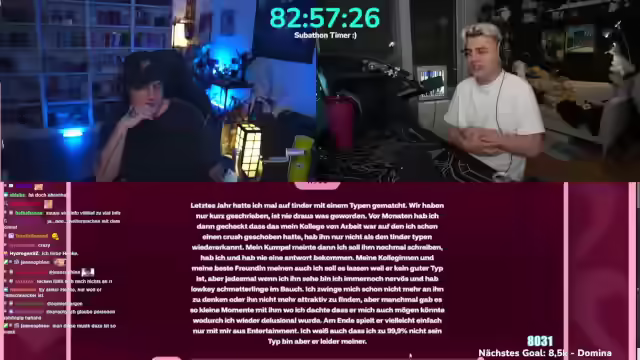 05:24:10Ein Zuschauer berichtet von einer toxischen Beziehung und Alkoholabhängigkeit, woraufhin dringend geraten wird, sich professionelle Hilfe zu suchen und mit Vertrauenspersonen über die Situation zu sprechen. Ein anderer Zuschauer fragt nach Hilfe bei Erektionsproblemen, die durch exzessiven Pornokonsum entstanden sind. Es wird empfohlen, den Pornokonsum zu reduzieren oder ganz einzustellen, um die eigenen Fantasien wiederzuentdecken und die reale Welt wieder interessant zu finden. Es wird auch über die Möglichkeit von Viagra zur kurzfristigen Unterstützung gesprochen, aber betont, dass die Ursache des Problems behoben werden muss. Die Diskussion schweift zu Dark Romance Büchern ab, die als extrem und teilweise verstörend beschrieben werden. Es wird eine Passage aus einem Dark Romance Buch vorgelesen, die von sexuellen Handlungen mit mehreren Personen handelt. Die Diskussionsteilnehmer äußern sich zwiespältig über Dark Romance, finden aber die Fantasievorstellung gesünder als Pornos, da sie die eigene Interpretation und Vorstellungskraft anregt. Es wird betont, dass Pornos durch die schnelle Reizfolge und ständige Verfügbarkeit zu einer Sucht führen können.