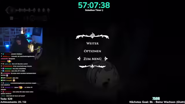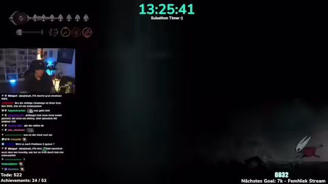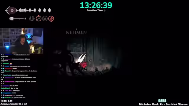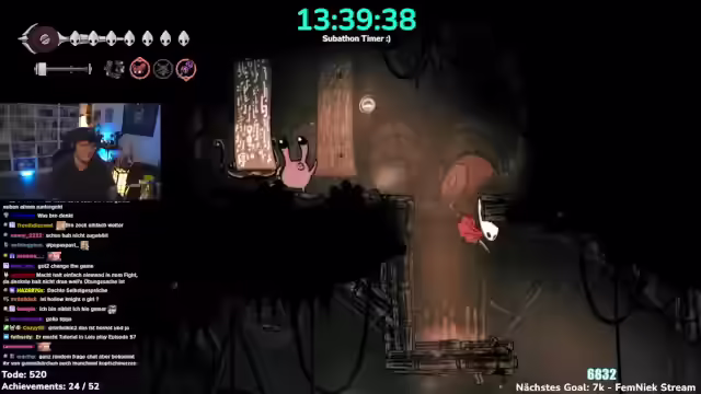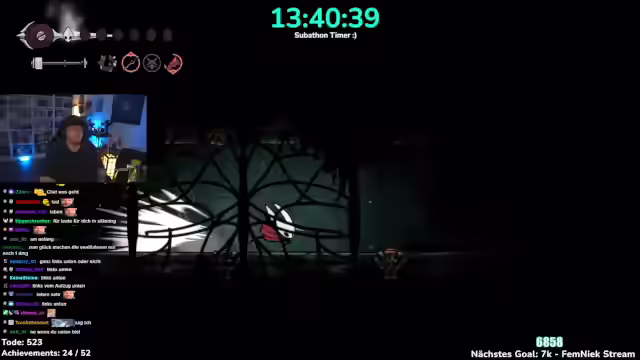 02:55:25Der Streamer äußert den Wunsch, Silksong im Sabaton zu 100% mit allen Trophäen abzuschließen. Shad hat einiges beim Counter draufgepackt, dass dieses Ziel möglicherweise erreicht wird. Er freut sich über die Hälfte aller Achievements in Silksong erreicht zu haben. Er fragt Kevin, ob sie um 19 und 20 Uhr reingehen sollen. Der Streamer betont, wie wichtig es ist, dass "Nur Liebe" nicht in einem toxischen Zusammenhang verwendet wird, sondern wirklich nur Liebe bedeutet und nicht zu "No Front" wird. Er spricht über Quests im Spiel und dass er eigentlich gar keinen Bock hat, diese Quest zu machen. Er will von Quest Schild zu Quest Schild gehen und gucken, wo es vielleicht neue gibt. Er fragt den Chat nach Tipps, wo er die Quest am besten machen kann und mit welchen Werkzeugen.