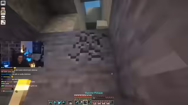 00:29:41Suche und Handel um einen verzauberten Trident (Riptide, Unbreaking, Mending) dominieren die Interaktionen. Nach verhandlungen über Subs (von 20 auf 15 reduziert) wird der Deal mit Nickbit geschlossen. Parallel dazu wird das Hauptprojekt: ein 200x200x125 tiefes Loch, vorgestellt. Die Herausforderung wird deutlich – ohne TNT-Duper (wegen Nether-Ausfalls) muss per Spitzhacke gearbeitet werden. Ein Noob (Effizienz 1, kein Mending/Unbreaking) wird kritisiert, während eigene Fortschritte mit Effizienz 5 und Mending gepriesen werden.
