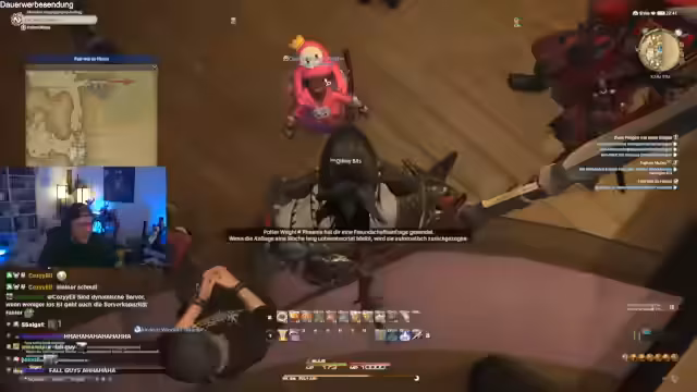 05:21:25Der Streamer enthüllt seine Absicht, gemeinsam mit dem Chat ins MMORPG Final Fantasy XIV einzusteigen. Er betont, dass das Spiel bis Level 70 kostenlos spielbar ist und danach nur etwa 11 Euro im Monat kostet. Ziel ist es, mit der Community eine Gilde zu gründen und gemeinsam zu leveln. Der Streamer plant, das Spiel sowohl während des Streams als auch privat zu spielen, um sich auf die bevorstehenden Fanfests vorzubereiten, insbesondere das in Tokio im Herbst.