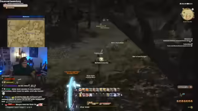 06:50:19Der Stream beginnt mit einer kurzen Sidequest, bei der der Streamer umdreht und sich mit verschiedenen Spielmechaniken beschäftigt. Er erkundet das Gebiet rund um Gridania und stößt auf Probleme mit Leuchtstäben und einer mysteriösen Kreatur namens Frogge. Dabei erwähnt er sein Level und dass er ein max Level von 100 erreichen möchte. Interessant ist auch sein Hinweis auf Baumhörnchen als süße kleine Verfolger und seine Begeisterung für das Spiel.