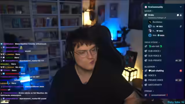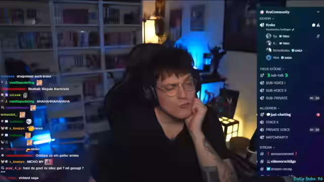 02:36:07Auf Krokos Discord werden die ersten Zuschauerfragen beantwortet. Themen reichen von Einkommen und dem richtigen Jungler in League of Legends bis hin zu hypothetischen Jobwechseln, wenn das Internet ausfiele. Die Streamer diskutieren darüber, wie 90% der erfolgreichen Streamer nicht für ein normales Leben gemacht seien, und überlegen, in welcher Anime-Welt sie leben würden.