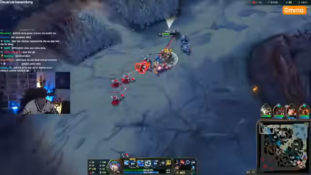 05:41:04Nach den gruseligen Erlebnissen im Horror-Game kehrt der Streamer zu League of Legends zurück und wählt den Champion Gwen für eine Top-Lane-Runde. Er äußert seine Begeisterung für Gwen und ihre Skins. Das Spiel beginnt jedoch schwierig, da der Gegner Sion sehr aggressiv spielt und der Streamer Schwierigkeiten hat, seine Lane zu halten. Es kommt zu Frustration über die Leistung des Junglers und die fehlende Unterstützung. Trotz der anfänglichen Rückschläge versucht der Streamer, das Beste aus der Situation zu machen und das Spiel zu drehen. Die Diskussionen über Spielstrategien und die Eigenschaften von Gwen dominieren das Gameplay. Der Streamer ist entschlossen, seine Fähigkeiten mit Gwen zu verbessern und die Herausforderungen der Top-Lane zu meistern, auch wenn das Spiel von toxischen Teammates und unglücklichen Entscheidungen geprägt ist.
