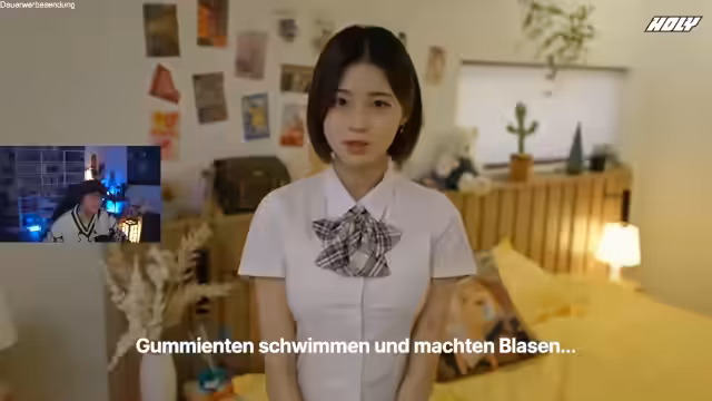 01:03:51Der Spieler tauchte in den Dating Simulator 'Five Hearts Under One Roof' ein, wobei der Titel des Spiels – 'Fünf Herzen unter einem Dach' – erst im Verlauf des Spiels vollständig verstanden wurde. Die anfängliche Szene zeigte den Protagonisten, der aus einem Traum erwachte und sich in einem Boardinghaus befand. Die Suche nach einer Krawatte führte durch verschiedene Bereiche des Zimmers, was die Interaktivität des Spiels verdeutlichte. Eine humorvolle Selbstreflexion entstand, als der Spieler feststellte, dass der Charakter des Spiels, ein fast 30-Jähriger, der immer noch für Taschengeld Hausarbeit erledigt, Parallelen zum eigenen Leben aufwies. Die Einführung eines kleinen Mädchens im Spiel löste Verwirrung und Spekulationen über ihre Identität aus.