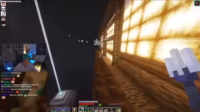 09:13:45Im Stream werden komplizierte Bauprozesse in Minecraft fortgesetzt, insbesondere bei der Errichtung eines Daches. Der Streamer stößt auf erhebliche technische Schwierigkeiten, darunter das ungenaue Platzieren von Blöcken und die Notwendigkeit von Hilfsblöcken, um die Struktur zu stabilisieren. Die Bauarbeiten erfordern eine präzise und zeitaufwendige Arbeit, was zu Frustration führt, insbesondere wenn die Symmetrie oder das Endergebnis nicht den Erwartungen entsprechen.