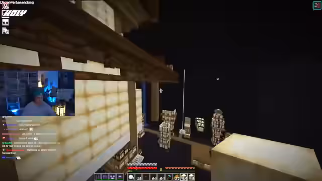 02:47:44Der Streamer setzt seine Bauprojekte in Minecraft fort, wobei er auf den Bau von großen, auffälligen Gebäuden konzentriert, die Orientierungspunkte darstellen sollen. Er beschreibt das Bauen als sehr arbeitsintensiv und teilweise frustrierend, besonders bei der Handhabung bestimmter Blöcke wie Fäden und Bambus. Es kommt zu technischen Unstimmigkeiten und kleineren Irritationen während des Bauprozesses. Der Streamer diskutiert zudem über die Effizienz von Farm-Methoden und stellt fest, dass manche manuellen Tätigkeiten schneller sind als das Bauen mit bestimmten Werkzeugen.