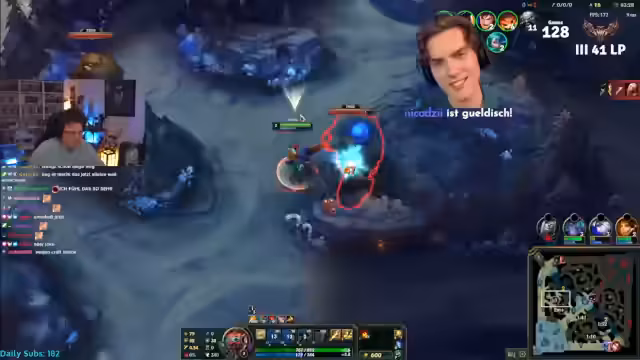 03:14:13Während eines laufenden League-of-Legends-Spiels wird die aktuelle Situation detailliert analysiert. Der Streamer bewertet die Stärken und Schwächen der gegnerischen und eigenen Teammitglieder, diskutiert Strategien wie das Jungen von Drakes, die Rolle der Champions wie Gwen und Viego, und ist frustriert über unkoordiniertes Verhalten im Team, das zu vermeintlich unnötigen Niederlagen führt.