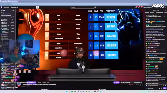 00:06:09Der Stream beginnt mit Begrüßungen des Chats und der Erwähnung, dass es ein sonniger Sonntag ist. Der Streamer kündigt an, dass heute die zweite Hälfte des Fortnite-Turniers mit einem Preispool von 250.000 Dollar stattfindet. Am Vortag hat sein Team bereits 10.000 Dollar gewonnen, was einen Gewinn von 3.000 Dollar pro Teammitglied bedeutet. Das Team hat die Chance, durch weitere Platzierungen den Gesamtpreis zu erhöhen und den Hauptpreis, einen Battle-Bus-PC, zu gewinnen.