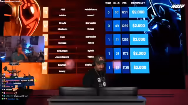 03:10:38Während des Streams wird kontinuierlich auf die aktuelle Tabelle der Earnings geachtet. Zu einem bestimmten Zeitpunkt erreicht das Team einen beeindruckenden Sprung in die Top 5, was den Streamer sichtlich beeindruckt. Es wird diskutiert, wie wichtig diese Runde für das Gesamtergebnis ist und wie sich die Platzierungen ständig ändern. Einige der Mitstreiter wie Yuki und Yusef sind ebenfalls in den Top 20 platziert und es herrscht eine allgemeine Aufregung über die dynamische Entwicklung der Runde.