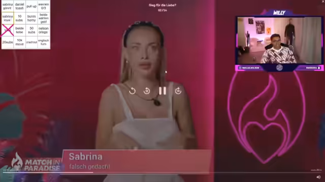 05:09:15Im großen Finale von Match in Paradise müssen die letzten Paare eine endgültige Wahl treffen: Liebe oder 10.000 Euro Geld? Der Streamer kommentiert die dynamischen Beziehungen und den Druck der Situation. Die Paare, wie Nelson und Carina sowie Danilo und Vanessa, scheinen sich für die Liebe zu entscheiden, was als emotionales Happy End gewertet wird. Das finale Ergebnis ist, dass alle Paare sich für die Liebe entscheiden und die Show gemeinsam verlassen.