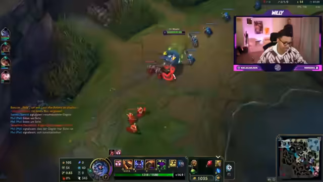 00:06:48Hauptsächlich wird League of Legends gespielt. Niklas berichtet von seinem aktuellen Rang, der sich schnell zwischen Bronze und Gold ändert. Er beschäftigt sich mit Champion-Select und Builds, wie zum Beispiel Malphite AP oder Mundo, und diskutiert Matchups. Der Fokus liegt auf Teamkommunikation und dem eigenständigen Spielen der Lane. Es werden viele Spielentscheidungen kritisch betrachtet und Teammitglieder werden für mangelhaften Spielstil kritisiert.