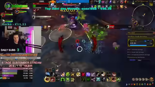 04:16:58Es wird eine detaillierte Taktik für einen bevorstehenden Bosskampf in einem Spiel besprochen. Der Tank muss den Boss etwas wegziehen, während Adds interrupted und getötet werden müssen. Ein Spieler wird vom Boss angegriffen und muss Dämonic Circle benutzen, um zu entkommen. Es wird betont, dass der Dämonic Circle in der Mitte des Raumes platziert werden soll. In der Intermission entsteht ein Kreis, aus dem man nicht heraustreten darf, um nicht zu sterben. Es wird zunächst ohne BL (Bloodlust) probiert. Während des Kampfes gibt es Anweisungen zum Zünden von BELZ und zur Reaktion auf bestimmte Angriffe des Bosses, wie z.B. den Befall. Spieler werden angewiesen, sich nach links zu bewegen, während der Streamer nach rechts geht, um den Angriffen auszuweichen. Ein Add namens 'Set' muss schnellstmöglich sterben, da es die Spieler bewegungsunfähig macht. Silver Dragon Addon wird empfohlen, um auf interessante Loot-Möglichkeiten aufmerksam zu werden. Es wird festgestellt, dass es wichtig ist, die Adds zu kontrollieren und zu unterbrechen, insbesondere Netzmagier. Darko soll immer ganz links laufen und casten, um den Angriffen auszuweichen. Der letzte Boss wird als spaßig angekündigt.
