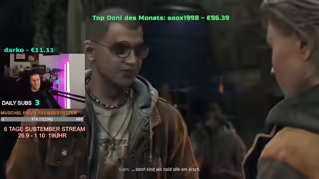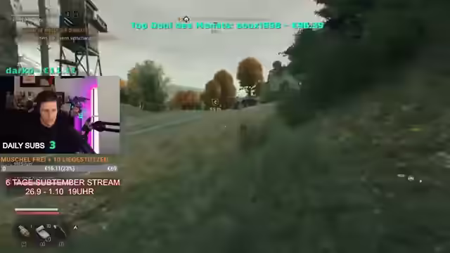 04:57:51Der Streamer und seine Mitspieler unternehmen eine Erkundungstour in einem Spiel. Der Streamer kommentiert, dass es mutig ist, mit einer Shotgun herumzulaufen, da dies Runner anzieht. Ein Spieler namens David hat eine Machete gefunden, die beim Schlagen von Zombies Chortöne erzeugt. Sie erreichen ein Haus, in dem sie Gegner bekämpfen. Es wird erwähnt, dass sie versucht haben, den Wiesmode zu skillen, um ihn kontrollieren zu können. Ein Spieler namens Pascalo muss ins Bett, da er morgen arbeiten muss. Es wird über eine telepathische Verbindung gesprochen, und ein Spieler namens Jacob wird erwähnt. Sie erhalten Informationen über eine alte Basis und einen Mähdrescher westlich von ihrem Standort. Die Autos im Spiel scheinen Fehler zu haben und im Boden zu stecken. Es wird ein Boss entdeckt und bekämpft. Nach dem Kampf werden Bandagen verteilt, und sie versuchen, eine Maschine anzuschalten, aber es scheint ein Problem mit dem Game Change zu geben. Es wird festgestellt, dass nicht genügend Moderatoren anwesend sind.