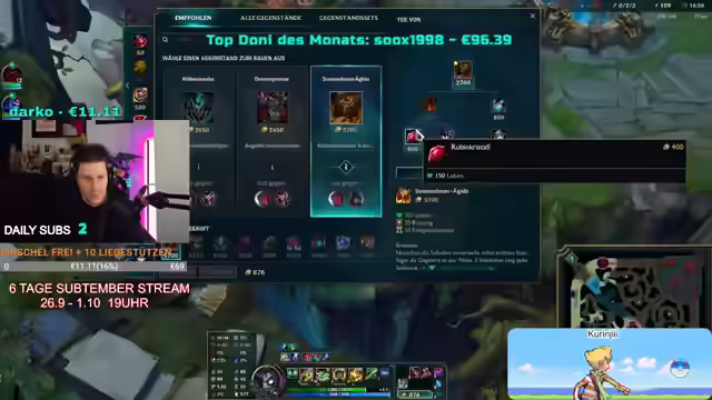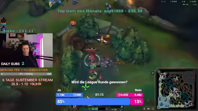 01:30:28Es wird die Abneigung gegen den League of Legends Champ Sharko geäußert, der als Psycho-Champ bezeichnet wird. Es wird über die Schwierigkeiten im aktuellen League of Legends Spiel gesprochen, insbesondere über die schwache Botlane und den starken gegnerischen Sharko. Es wird festgestellt, dass das Spiel aufgrund der Umstände schwer zu gewinnen ist. Der Streamer vergleicht Jungle mit Schach, bei dem die Figuren machen, was sie wollen. Es wird die hohe Verantwortung des Junglers betont, der oft als Sündenbock für Fehler der Lanes herhalten muss. Es wird die Bedeutung anspielbarer Lanes hervorgehoben. Die Halloween-Planung wird angesprochen, wobei das Cosplay-Vorhaben aufgrund von Cebos Abwesenheit ins Wasser fällt. Es wird überlegt, was stattdessen an Halloween gemacht werden könnte, aber es gibt noch keine konkreten Pläne. Das Spiel Dead Reset wird vorgeschlagen und der Streamer will es sich ansehen.