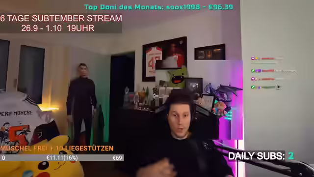 02:02:33Es wird festgestellt, dass die Zuschauerzahlen im Chat ungewöhnlich niedrig sind, was auf ein Problem mit Twitch hindeutet. Es wird vermutet, dass es mit Updates für Freitag zusammenhängen könnte. Der Streamer empfindet Twitch als frustrierend. Es wird gefragt, ob Sport heute stattfindet. Der Streamer leidet unter Montagsdepressionen und es läuft heute alles schief. Es wird betont, dass man für die kommenden vier Tage kämpft und hofft, dass sich alles auf das Wochenende konzentriert. Es wird erwähnt, dass Subs und Donations nicht nur finanziell wichtig sind, sondern auch moralische Unterstützung bieten.