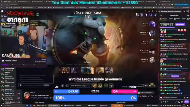 Nach 21 Tagen ununterbrochenen Streamens ist der Kanal „nilo“ zu einer Pause gezwungen. Der Inhalt wurde hauptsächlich von World of Warcraft und League of Legends geprägt. In WoW agierte der Streamer kooperativ mit seiner Gilde, während bei League of Legends strategische Fehler und ein fehlendes Teamverständnis zu unglücklichen Niederlagen führten. Der Streamer zeigte sich mental erschöpft und kündigte für den kommenden Samstag die Wiederaufnahme des regulären Betriebs an.