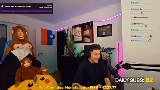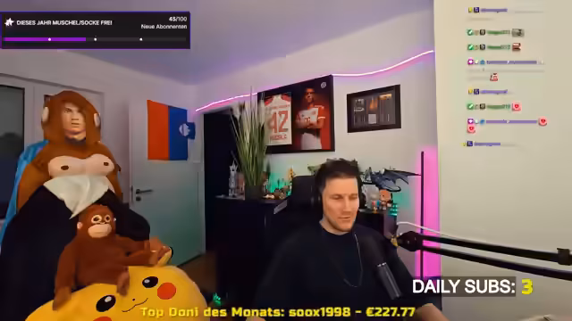 02:58:51Nilo spekuliert darüber, ob Mr. Einsamer ein bekannter Subscriber (Benjamin) sein könnte. Er vergleicht die Sub-Streaks und stellt fest, dass es sich wahrscheinlich um einen neuen Account handelt. Die Diskussion zeigt die enge Bindung zur Community, während er Benjamin als langjährigen Unterstütfer identifiziert.