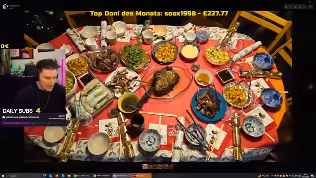 03:40:06Der Streamer beginnt den Stream und bereitet sich auf die Watch-Party vor, während er seine Mahlzeit genießt. Er erwähnt, dass er eine Lampe anmacht, um die Sichtbarkeit zu verbessern, und kündigt einen Countdown an, um die Stranger-Things-Folgen pünktlich zu starten. Nach dem Countdown startet er die erste Folge und weist den Chat explizit an, keine Spoiler zu posten, um allen ein unverfälschtes Erlebnis zu ermöglichen.