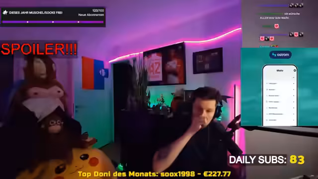 00:19:35Es wird eine Watch Party für Stranger Things angekündigt, die voraussichtlich um 22 Uhr starten soll. Der Streamer betont, dass er selbst noch keine der nächsten Folgen gesehen hat und warnt ausdrücklich vor Spoilern. Wer Spoiler postet, wird sofort und permanent gebannt, ohne Diskussion oder Timeouts. Diese Regel wird als notwendig beschrieben, um die Spannung für alle Zuschauer zu erhalten, insbesondere da viele die Serie noch nicht weitergesehen haben.
