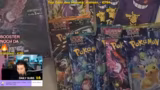 00:12:26Nach dem musikalischen Einstieg wechselt der Streamer zum Hauptthema: dem Content-Breaking. Er präsentiert eine riesige Auswahl an Booster-Packs verschiedener Pokémon-Serien, darunter ein ganzes, noch originalversiegeltes Display von Night Wanderers. Mit über 50 Packen versichert er den Zuschauern, dass es heute unmöglich sein wird, dass alles ausverkauft ist. Falls dies doch passiert, kündigt er ein dickes Special für den Chat an. Zudem startet er direkt ein erstes Giveaway.