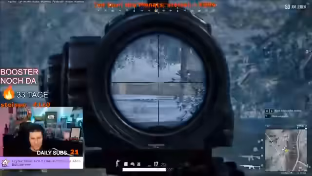04:31:03Der Streamer erzählt von einer Aktion mit seinem Vater, bei der er Gegenstände in einem Spiel looten wollte. Er berichtet, ein Brecheisen gefunden und ein Haus geplündert zu haben. Es kommt zu einem Gespräch über Stream-Sniping, wobei ein Zuschauer erwähnt wird, der den Streamer auf seiner Leiche verspottet. Der Streamer diskutiert über die Taktik des Gegners und seine eigene Position im Spiel, wobei er seine Markenliste erwähnt.