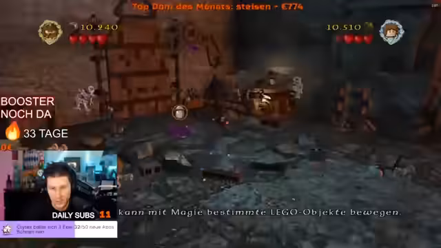 02:19:12Während des Streams von 'Herr der Ringe' gibt es eine dynamische Interaktion mit anderen Spielern wie Uematzos und Darko. Der Streamer erkennt ein Problem bei den Zuschauerrechten für Giveaways und diskutiert, dass nur Follower Packchen gewinnen dürfen. Trotzdem werden einige Packchen an nicht-Follower vergeben. Der Spielverlauf ist geprägt von Kämpfen gegen Orks, der Nutzung von Fähigkeiten und dem Vorankommen in der Geschichte. Der Streamer kommentiert die Ereignisse im humorvollen und spannungsgeladenen Stil.