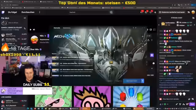 03:32:02Der Streamer stellt das Spiel 'Mechabreak' vor, eine Mecha-Action-Demo, die kostenlos auf Steam verfügbar ist. Er äußert sich unentschlossen über den Veröffentlichungstermin und die eher positiven, aber auch als seltsam beschriebenen Steam-Bewertungen. Das Spiel, in dem man als Pilot in einem mechanischen Monster kämpft, wird als sehr wild und extrem im asiatischen Stil wahrgenommen und er weist auf die Demo hin, die zurzeit zum Testen offen ist.