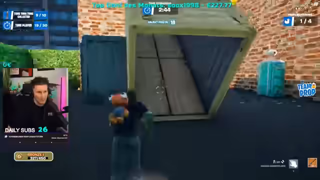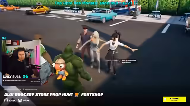 04:13:12Der Streamer und seine Mitspieler starten eine Prop Hunt-Runde in einer benutzerdefinierten Aldi-Supermarkt-Map. Nach anfänglicher Verwirrung über die verfügbaren Rollen (Jäger oder Versteckte) entscheiden sie sich für das Verstecken. Dabei kommt es zu lustigen Situationen, wie dem Versteck in einem hinteren Bereich des Gartens, der schwer zugänglich ist. Die Runde ist von viel Gelächter und Chaotik geprägt, als die Jäger die versteckten Mitspieler schwer finden können.