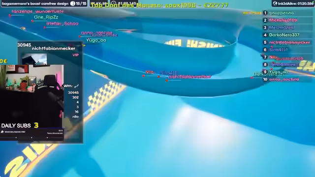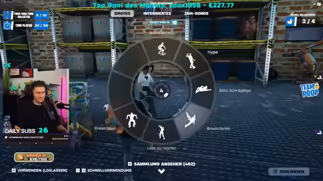 01:55:12Nachdem Knoppy gewonnen hat, wird dieser als "Mann von Welt" gefeiert. Der Streamer unterbricht den Spielfluss, um einen aufregenden Remix voller EDM- und Rap-Einflüsse zu spielen und im Chat zu teilen. Er beschreibt die musikalische Fusion als "geballt" und "voll geil", während er den Chat zur Interaktion auffordert und seine Begeisterung für den Sound artikuliert.
