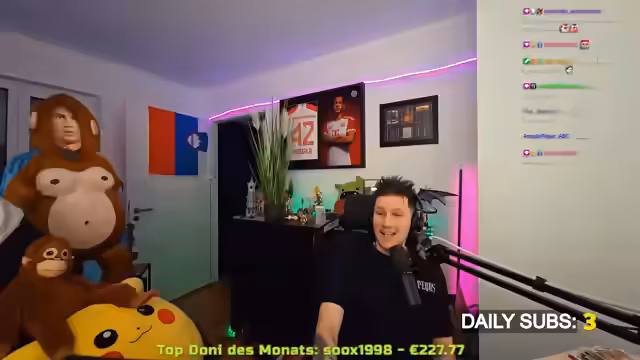 00:09:32Der Streamer stellt umfassende Anpassungen an seinem Streaming-Setup vor. Er hat die Raumbeleuchtung deutlich heller gestaltet, um eine natürlichere und hellere Bildwirkung zu erzielen. Zusätzlich veränderte er die Kameraposition in der Gaming-Szene zu einem höheren Format, wodurch mehr Platz für das Gameplay entsteht, während er selbst besser sichtbar bleibt. Diese Optimierungen wurden vorgenommen, um die visuelle Qualität zu verbessern, insbesondere da die bisherige Belichtung Augenringe hervorheben konnte. Er betont, dass es sich um eine reale Verbesserung handelt und keine Filter zum Einsatz kommen, und bittet das Publikum um Feedback zu den neuen Einstellungen.
