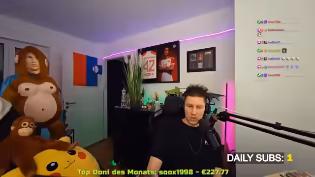 00:40:25Anlässlich des bevorstehenden 10-Jahre-Jubiläums seiner Streaming-Karriere reflektiert der Streamer seine Entwicklung. Er beschreibt, wie das Streaming ihm aus einer Phase der Unsichtbarkeit und sozialen Isolation geführt hat, in der er als Jugendlicher kaum wahrgenommen wurde. Nun erfüllt ihn die Tatsache, mit seinen Streams Menschen zu Unterhaltung und Entspannung zu verhelfen, mit Stolz. Dabei geht er auch auf eine schwierige Vergangenheit ein: Ein dreitägiger Stream mit Gamerslam und Simon führte zu internen Konflikten, in denen er sich ausgenutzt fühlte. Diese Erfahrungen veranlassten ihn, sich von bestimmten Kreisen zu distanzieren und seinen eigenen, unabhängigen Weg zu gehen, auch wenn dies zeitweise Reichweitenverlust bedeutete.