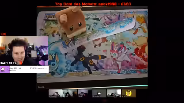 01:25:51Ein Hauptthema des Streams ist ein Pokémon-Gewinnspiel mit verschiedenen Preisen wie Spielmatten und Evoli-Packungen. Teilnehmer können mit Tickets an dem Gewinnspiel teilnehmen, wobei jede Teilnahme mit Dreams, der In-Währung des Streams, bezahlt wird. Anna gewinnt das Hauptgewinn und überrascht alle mit ihrer Gewinnsammlung. Der Streamer diskutiert auch die Logistik des Versands der Gewinne und gibt Tipps, wie man Giveaways organisieren kann, um den administrativen Aufwand zu reduzieren.