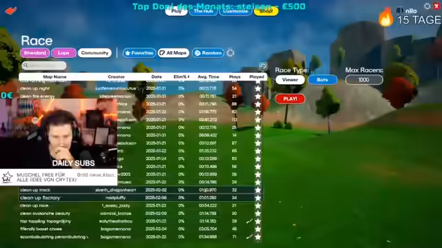 02:07:05Es wird erwähnt, dass Solo-Duo-Spiele gemacht werden müssen, weil zuvor verkackt wurde. Es gibt Enttäuschung über die T-Rex und die Ankündigung, dass es keinen Triceratops gibt. Taktik möchte ein Solo-Duo-Spiel machen. Es werden japanische Pokémon-Booster erwähnt, die als kleines Goodie bei einem 10er Sub-Ober verlost werden sollen. Es wird diskutiert, ob man die Booster selbst öffnen oder verlosen soll. Es gibt eine Aktion, bei der es Musche frei gibt, weil Crytek 88 Subs geschafft hat. Taktik spendet 40 Euro, um ein Booster-Pack zu öffnen und zieht einen Vogel. Es wird überlegt, ob die lilafarbenen Booster die besseren sind. Es wird sich für den Support bedankt. Es wird überlegt, die Donation so einzustellen, dass bei 50 Subs ein spezieller Alert kommt. Es wird überlegt, ob es möglich ist, die Landschaft zu erweitern. Es wird erwähnt, dass am Geburtstag nicht live gestreamt wird, da Treffen mit anderen Personen geplant sind und man eine Auszeit vom Hustle benötigt. Es wird befürchtet, dass die Subs in diesem Monat nicht erreicht werden, was zu weniger Einnahmen führen würde. Es wird gehofft, die 300 Scheißpunkte noch zu erreichen, um den Deal zu sichern. Es wird überlegt, wie man die Donation-Alerts für Subs einstellen kann, um spezielle Alerts bei bestimmten Sub-Zahlen zu priorisieren.