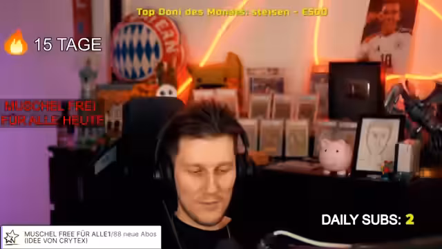 00:09:07Nach einer Verzögerung begrüßt der Streamer die Zuschauer und gibt Einblicke in seinen Abend. Er berichtet über ein gescheitertes Date mit Axel, bei dem er nicht konzentrieren konnte. Der Streamer erwähnt verschiedene chatten und gibt einen Ausblick auf seine Abwesenheit von Donnerstag bis Sonntag. Hauptthema des Streams ist die von den Zuschauer gestartete Aktion, bei der 88 Subs für den heutigen Stream angesammelt wurden, was der Streamer als eskaliend und geisteskrank beschreibt.