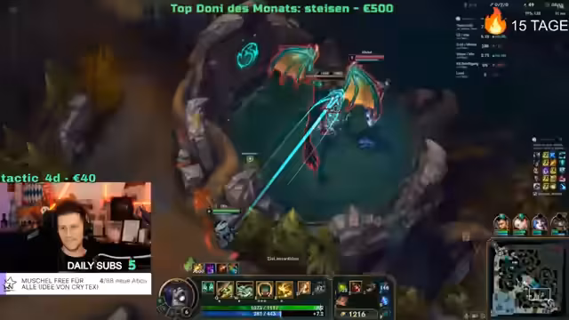 02:44:14Der Streamer wechselte zu einem Spiel von League of Legends. Dabei wurden seine Schwierigkeiten in der Lane-Phase gegen einen starken Yorick beschrieben, wobei er ein hohes K/D-Verhältnis hatte. In der Mitte des Spiels wurde das Teamplay als problematisch bezeichnet, als die Botlane zu spät in einen Kampf einstieg und das Team somit eine wichtige Schlacht verlor.