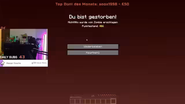 03:16:01Im Stream herrscht großer Frust über die unvorhergesehene und harte Situation im Spiel. Der Streamer berichtet davon, dass im Nether fast alle gesammelten Ressourcen, darunter 40 Level, Diamanten und Spitzhaken, aufgrund eines Todes und nachfolgender Lava-Einwirkung komplett verloren gingen. Diese plötzliche Vernichtung der gesamten Stunde Arbeit und die ständigen Tode durch Creeper und Spielmechaniken brechen den Streamer sichtlich übermäßig zusammen, was er mehrfach mit den Worten 'Reels bricht mich gerade extremst' ausdrückt.