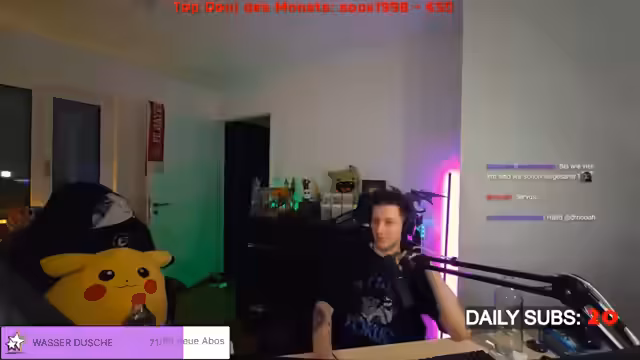 00:31:10Nachdem das Ameisenproblem kurzzeitig zurücktritt, bleibt der Streamer sichtlich von der Großzügigkeit seiner Community beeindruckt. Er würdigt erneut den großzügigen Support durch Pascal, der 20 Subs geschenkt hat, und nennt ihn "geistig krank". Er zeigt sich zerrissen zwischen der Frustration über die Ameisen und der overwhelming Dankbarkeit für die Hilfe. Er betont, dass er von der Liebe und dem Support der Community durch das "geisteskrane" Verhalten Pascals tief berührt ist.