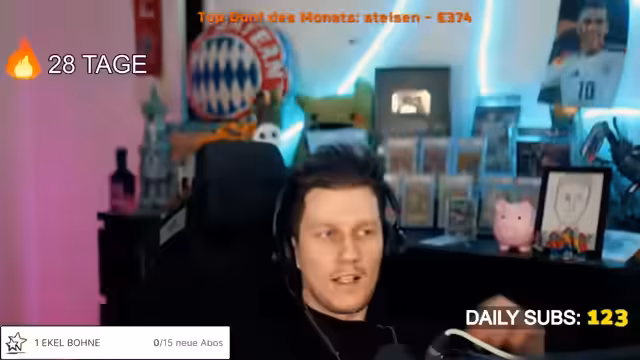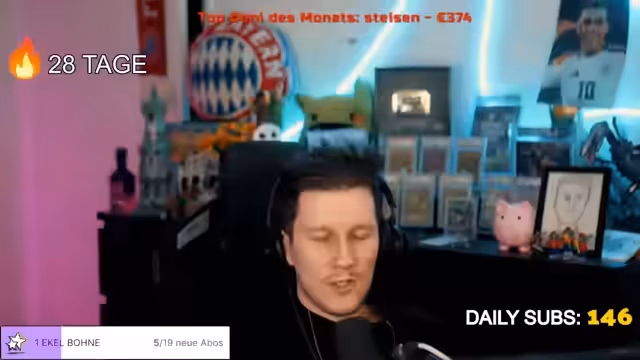 00:07:35Der Stream beginnt mit dem Streamer, der seine Mute-Funktion bemerkt und die Zuschauer begrüßt. Er kündigt einen 12-stündigen Stream an, der bis in die Nacht andauern kann. Er betont, dass er speziell für die Zuschauer zwei Packungen Ekelbohnen sowie weitere Pokémon-Boosterpacks, einschließlich Evoli- und Charizard-Packs, organisiert hat. Eine Packung dient als Lockmittel für den Pot, während die andere für den eigentlichen Verzehr vorgesehen ist, falls der Pot voll wird. Die Stream-Zeit ist bewusst auf das Wochenende angesetzt, um das volle Potenzial auszuschöpfen.