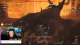 04:02:35Nach dem Essen geht der Streamer zu dem Spiel 'Monster Hunter Wilds'. Er erkundet eine eisige Gegend, kämpft gegen Monster und sammelt Ressourcen. Allerdings hat er Probleme mit der Steuerung, da er sich in eine Ecke 'verrennt' und nicht mehr kämpfen kann. Zudem muss er feststellen, dass er im nächsten Gebiet gegen Feuermonster kämpfen muss, weshalb er seine Rüstung wechseln müsste. Dies ist anfangs nicht möglich, was die Situation frustrierend macht.