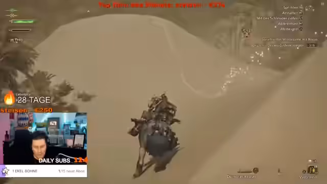 01:04:24Durch eine massive Donation in Höhe von 250 Euro wird der bisherige Streamrahmen ins Wanken geraten. Der Streamer zeigt sich von der Spende überwältigt und gestört. Die Spende führt zu einer neuen Berechnung: Statt einer werden nun mehrere Packungen Ekelbohnen im Wert der Spende verlangt. Die genaue Anzahl der Bohnen muss erst ermittelt werden, was zu einer komplexen Situation führt, in der der Streamer versuchen muss, den Willen des Spenders zu erfüllen, ohne den Stream in eine unkontrollierbare Richtung zu lenken. Dies zwingt ihn, seine Challenge neu zu definieren.