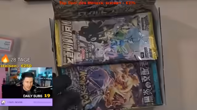 00:37:36Der Streamer stellt die Boosterpacks für die Zuschauer vor, die sie im Tausch gegen Support erhalten können. Er hat ein ganzes frisches Sealed Display vorbereitet, das hochwertige und potenziell wertvolle Karten wie Gengar und Sherox enthalten kann. Er betont, dass es sich um einen komplexen Zufall handelt, falls ein besonders seltener Karte gezogen wird, würde er diese speziell mit dem Gewinner abkaufen. Alle Base-Karten, die nicht im Display oder den anderen Packen sind, werden gesammelt und an ein Kinderheim gespendet, wodurch ein sozialer Aspekt in den Stream integriert wird.