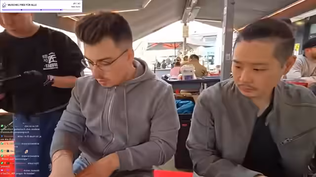 00:21:30Der Streamer möchte nicht an jedem Stand mit der Kamera filmen, um niemanden zu provozieren. Er beurteilt aus der Entfernung, ob ein Stand interessant ist. Ein Teddybär erregt Aufmerksamkeit, und es wird gescherzt, dass Taktik ihn wahrscheinlich als 'krustig' bezeichnen würde. Ein Stand mit Lampen wird als potenzieller Laden für Taktik bezeichnet. Es werden DVDs und CDs entdeckt, darunter das komplette Harry-Potter-Filmset auf Blu-ray. Der Streamer hatte selbst nie Blu-rays. Es wird über das Fahrradfahren gesprochen, das man lernt, indem man die Balance hält. Blu-ray wird als bessere Qualität als DVD beschrieben. Auf dem Flohmarkt gibt es genügend Essen. Der Streamer möchte mit einem E-Scooter durch die Gegend fahren, ohne anzuhalten. Er bemerkt ein Pokémon-Zelt und ein schickes Fahrrad. Schallplatten werden als etwas für ein Bode bezeichnet. Der Streamer hat noch nie eine Schallplatte in der Hand gehabt. Parfüm-Sachen werden als potenziell gefälscht angesehen. Der Chat wird verdächtigt, die Preise für die Waren in die Höhe zu treiben.
