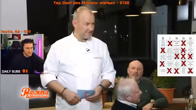01:55:22Der Streamer analysiert die Folge 'Das Netz' von Frank Rosin, in der die vor der Pleite stehende Kneipe Familie Wellnitz dargestellt wird. Er betont die ernste Lage der Betreiber, die unter finanziellen Schwierigkeiten und der Krankheit der Ehefrau leiden. Dabei kritisiert er den fehlenden Willen zur Veränderung und die nachlässige Führung, die das Scheitern der Kneipe trotz desτροφής des Sternekochs wahrscheinlich macht.