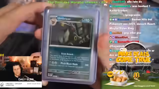 00:29:42Es wird betont, dass das Öffnen von Pokémon-Karten und das Sammeln selbst im Vordergrund stehen sollte und nicht der finanzielle Gewinn. Der Streamer erinnert sich an frühere Pack Openings für die Zuschauer und hofft auf deren Unterstützung, um solche Events in Zukunft wieder anbieten zu können. Er betont, dass einige Leute viel Geld für Karten ausgeben, ohne die gewünschten seltenen Karten zu erhalten. Der Streamer kündigt ein kommendes Event an, bei dem er mit Darko zusammen Soulink in Karmesin spielen wird. Es wird ein Double-Screen-Setup geben, bei dem beide Spieler gleichzeitig zu sehen sind. Der Streamer glaubt, dass Karmesin im Soulink-Modus schwieriger sein wird als Diamond and Pearl. Zuschauer können in einer Stock-Challenge mitmachen. Der Streamer wählt Karten aus Obsidian Flames zum Graden aus, darunter das Desportal, das auch Nele gezogen hat. Es wird betont, dass die Karten, die der Streamer sleeft und graden lässt, von hoher Qualität sind.