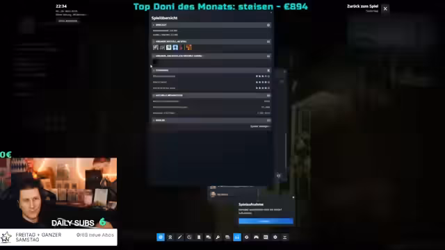 06:16:48Der Streamer kündigt einen Wechsel des Spielmoduls an. Stattdessen wird nun ein Ratespiel und ein weiteres Spiel mit Stars gespielt. Er erwähnt, dass die Spieler nach sieben Stunden noch einen "großen Plan" haben, um mehr Geld zu verdienen. Der Fokus liegt nun auf Glücksspielen wie Blackjack und Automaten, wo die Teilnehmer auf Gewinne hinarbeiten. Der Streamer plant auch, einen Soundtrack abzuspielen und lädt die Chat-Mitglieder ein, mitzuspielen.