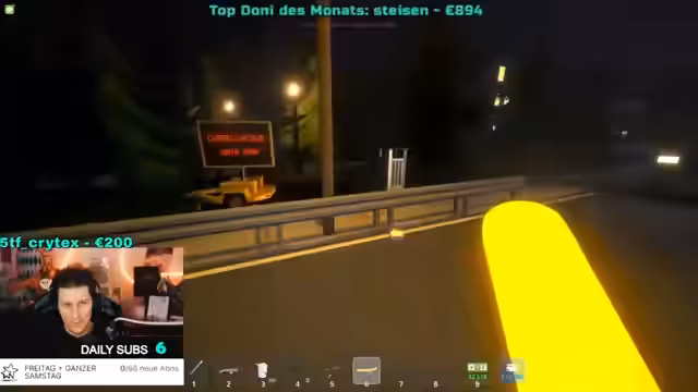 06:07:52Der Stream beginnt mit hektischen Aktionen im Spiel. Ein Spieler schießt auf einen anderen, was zu Verwirrung führt. Es gibt Explosionen, Schüsse und Rückzug. Es wird über den Schützen gerätselt und eine Person verdächtigt, eine Flammenwaffe geworfen zu haben. Der Täter beschreibt die Situation als chaotisch und berichtet, dass er selbst beschossen wurde, ohne selbst aktiv gehandelt zu haben. Es kam zu einem Vorfall an einer Brücke und es gibt laute Ausrufe wie "Oh, um Himmlers Willen, was ist da passiert?" und "Oh, fuck, Alter."
